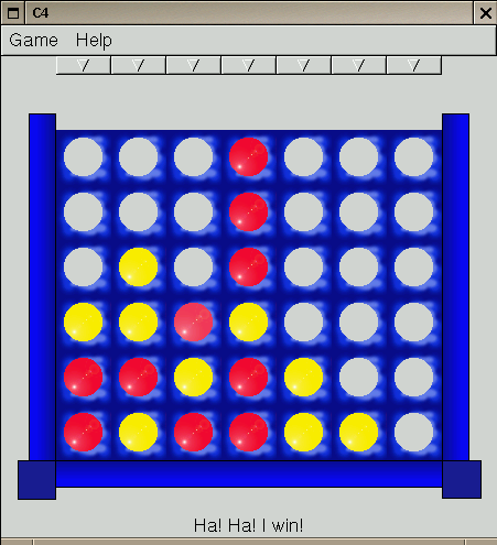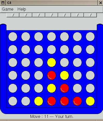 "c4" is a version of the Connect 4 game for Linux. It can be compiled either as